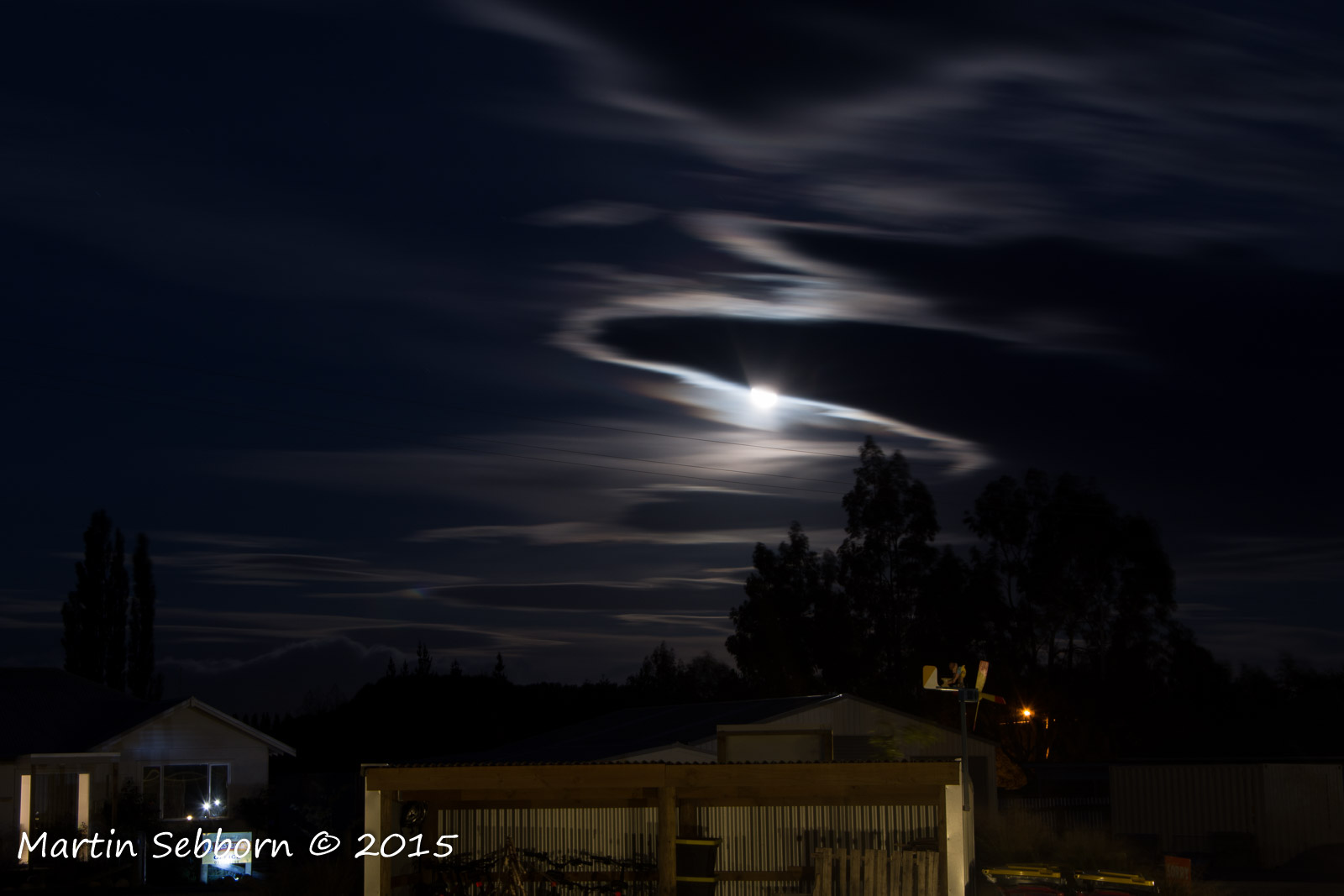 A quick experiment - moon and clouds creating a fabulous pattern. The view from our accommodation in Fairlie...